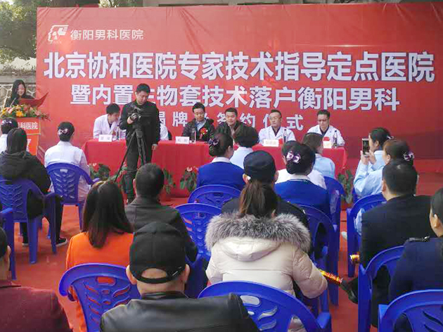 12月24日上午,为让更多男性性功能障碍患者接受更科学、更规范、更有效地治疗,由衡阳北大泌尿医院主办、北京协和医院及北京桀亚莱福生物技术集团协办的“2017男科生殖整形新技术研讨会暨脱细胞生物补片技术临床应用演示会”成功举行。发布会上,衡阳北大泌尿医院,被授予“北京协和医院专家技术指导定点医院”、“内置生物套技术临床技术协作医院”,大力推广发展脱细胞生物补片技术,推动衡阳市男科学技术的发展。